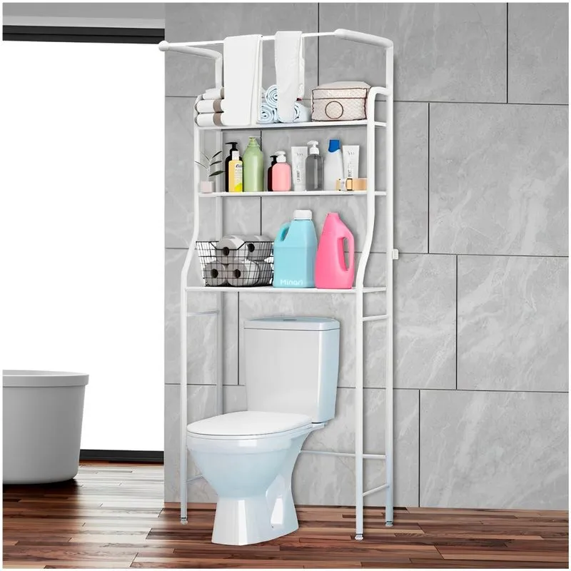 ¡Optimiza tu baño con estilo! Nuestro estante de baño con porta toallas de nuevo diseño combina funcionalidad y elegancia. Fabricado en metal resistente con acabado antióxido y recubrimiento en blanco brillante, ofrece amplio espacio para organizar toallas, productos de higiene y accesorios. Incluye un porta toallas integrado para mayor comodidad y barras laterales para evitar caídas. Su montaje es sencillo y se adapta a espacios reducidos, encima del inodoro o junto al lavabo. Ideal para baños modernos que necesitan orden y practicidad.