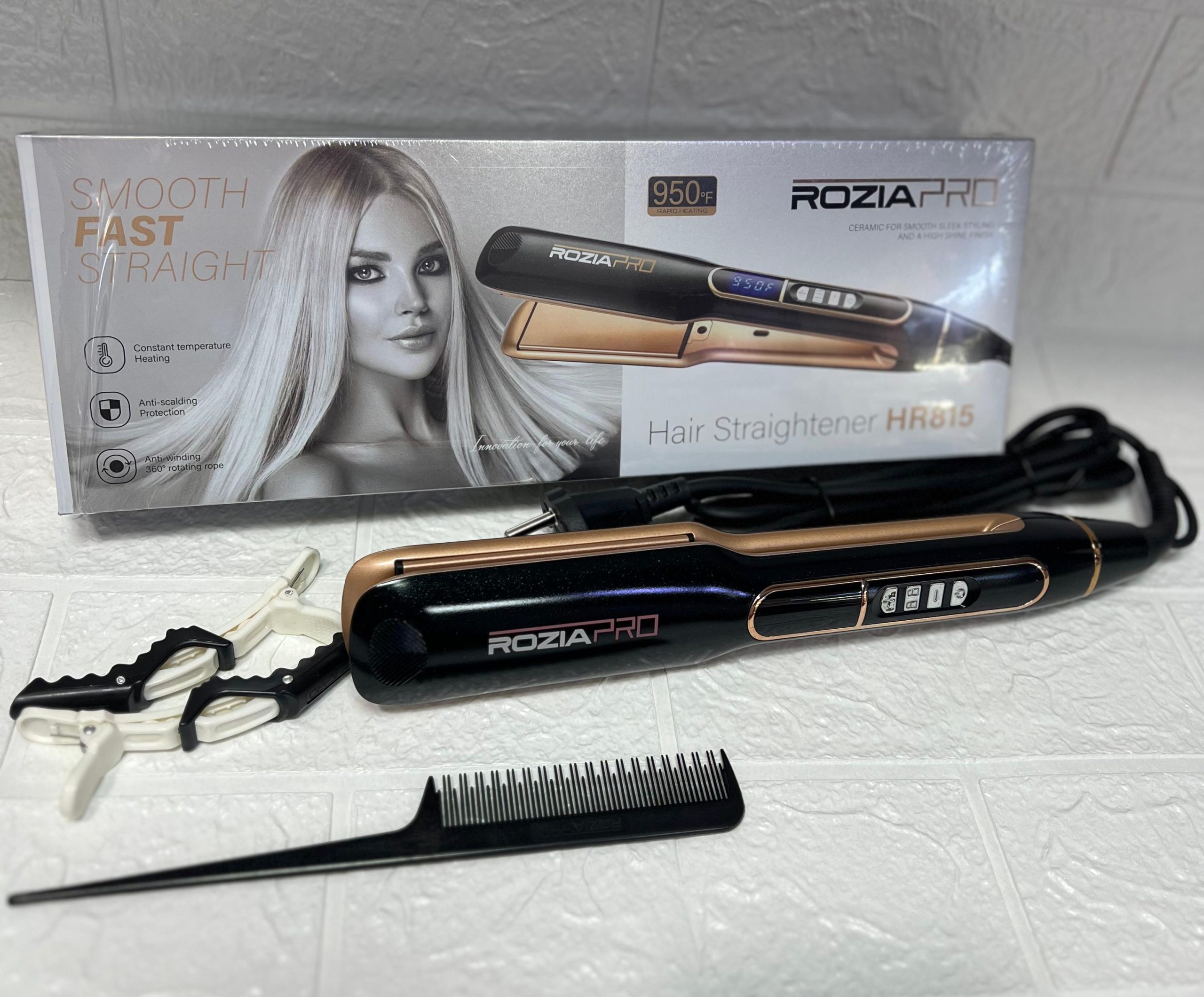 Plancha Alisadora Rozia Pro – Cerámica, Temperatura Ajustable y Protección Anti-Calor